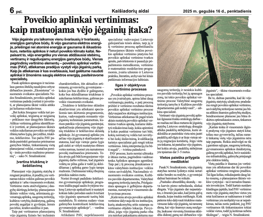 „Bet kokia žmogaus veikla turi poveikį aplinkai, teigiamą ar neigiamą – priklauso nuo daugybės faktorių. Atlikus vertinimą galima identifikuoti ir įvertinti, ar planuojamos ūkinės veiklos sukeliamas poveikis neviršija ribinių taršos lygių, pavyzdžiui, triukšmo, šešėliavimo. Tuo pačiu PAV padeda pasirinkti geriausius prieinamus gamybos būdus, tinkamiausią vietą planuojamai veiklai, o nustačius poreikį – imtis poveikio mažinimo priemonių“, – sako N. Smalinskienė.